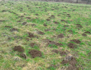 Retour d’une promenade dans les volcans d’Auvergne. Mes amis les taupes, rat-taupes, campagnols sont en grande forme en ce début de printemps, comme le confirme cette photo prise dans un champ destiné à devenir un terrain de golf (enfin je crois, ça serait cocasse).
