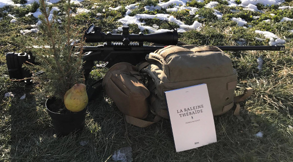 Bertrand m’envoie cette photo du (terrible) fusil de sniper autrichien Steyr SSG08 cité en page 209 de la Baleine Thébaïde, dans une mise en scène formidable – poire du Samaritano Institut incluse ! Merci à lui et je ne lui demande pas ce qu’il fait avec un tel fusil…
