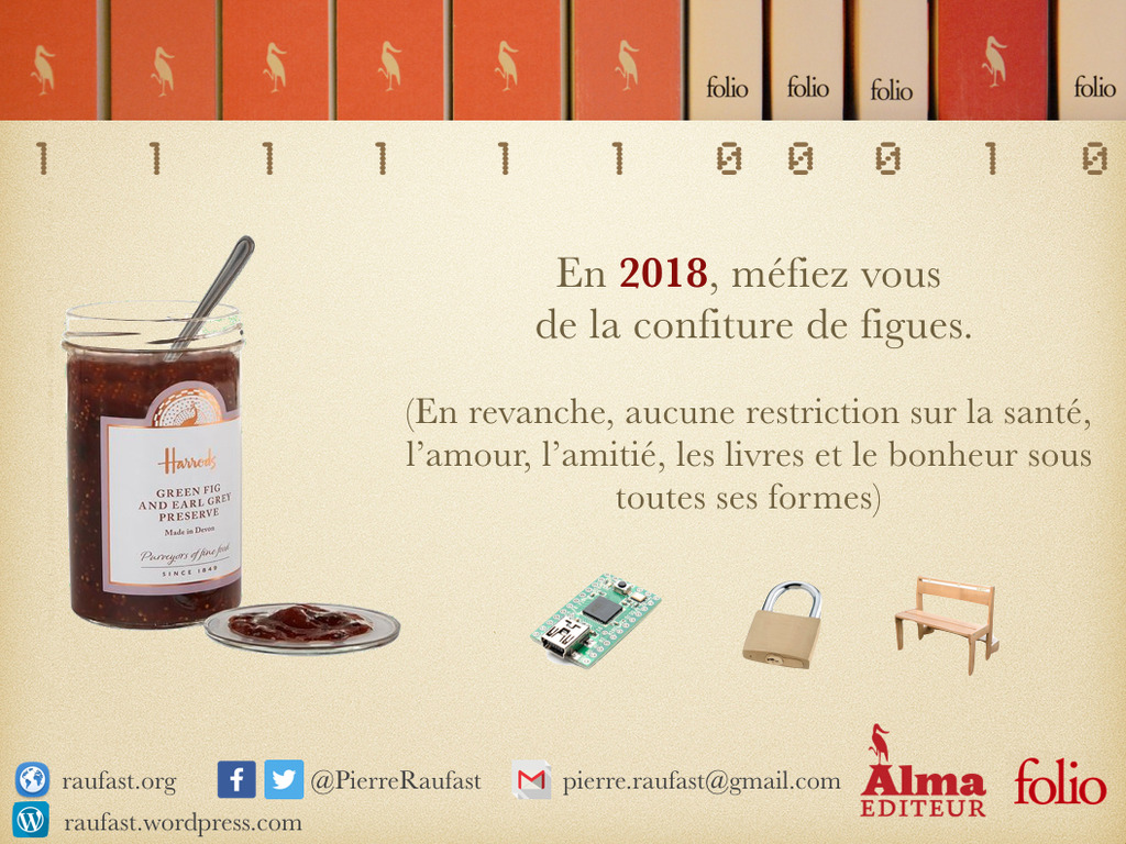 Bonne Année 2018 ! Je vous souhaite une excellente année 2018 ! Rendez-vous fin août pour un nouveau roman et en septembre pour la sortie poche de « la baleine thébaïde » ! 😀 Partager : Partager sur Facebook(ouvre dans une nouvelle fenêtre) Facebook Partager sur X(ouvre dans une nouvelle fenêtre) X J’aime chargement… Similaire Laisser un commentaire Annuler la réponse. Δ Ce site utilise Akismet pour réduire les indésirables. En savoir plus sur la façon dont les données de vos commentaires sont traitées.