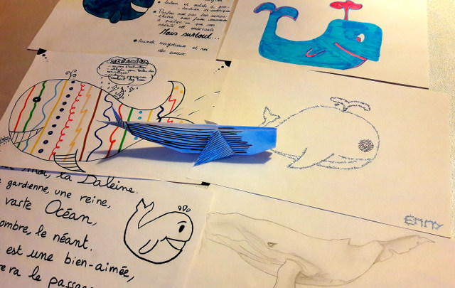 Décidément, les lycéens sont très chouettes. Cette semaine, j’ai rencontré des classes de seconde des Lycées Galilée à Vienne (38) et du Cheylard (07). J’ai eu droit à des gâteaux, des poèmes, des dessins et une baleine origami…
