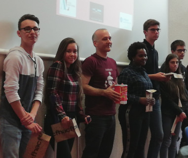Les élèves de seconde des lycées Albert Londres et Valery Larbaud (Cusset dans l’Allier) ont travaillé toute l’année sur la Fractale des raviolis. Les enseignants ont organisé un concours de nouvelles de récits enchassés « à la mode Raufast ». Jeudi dernier, je les ai rencontrés et nous avons discuté du métier d’écrivain, du roman et de leurs nouvelles. Voilà une photo des 6 lauréats. Bravo à eux !