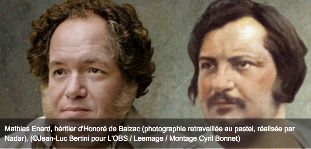 Suite à son Goncourt en 2015, Le Nouvel Observateur a comparé Mathias Enard à Honoré de Balzac dans cet article. Comparaison soulignée par son physique, comme le montre cette étonnante illustration.
