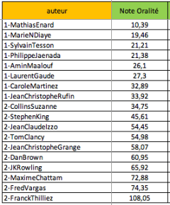 A titre d’exemple, prenons Guillaume Musso : les 5 auteurs les plus proches de lui sont tous des poids lourds internationaux.