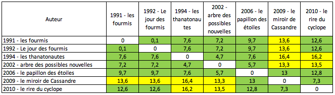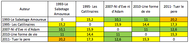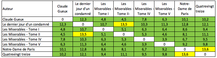 Tout cela est bien entendu discutable, mais si la mesure est la même pour tous, les distances entre auteur représenteront toujours quelque chose. A nous de l’interpréter ! 😉