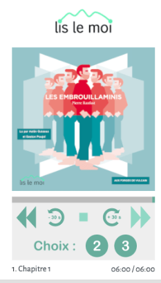 Les Embrouillaminis : ce roman « dont vous êtes le héros » n’était pas le plus simple à transformer en livre audio ! Mais pari tenu pour Lislemoi, qui a réussi ce tour de force via son application. L’expérience utilisateur est très bonne : à chaque fin de chapitre, il suffit de faire son choix. Lu par Aslân Guiassa et Gaston Poujol.